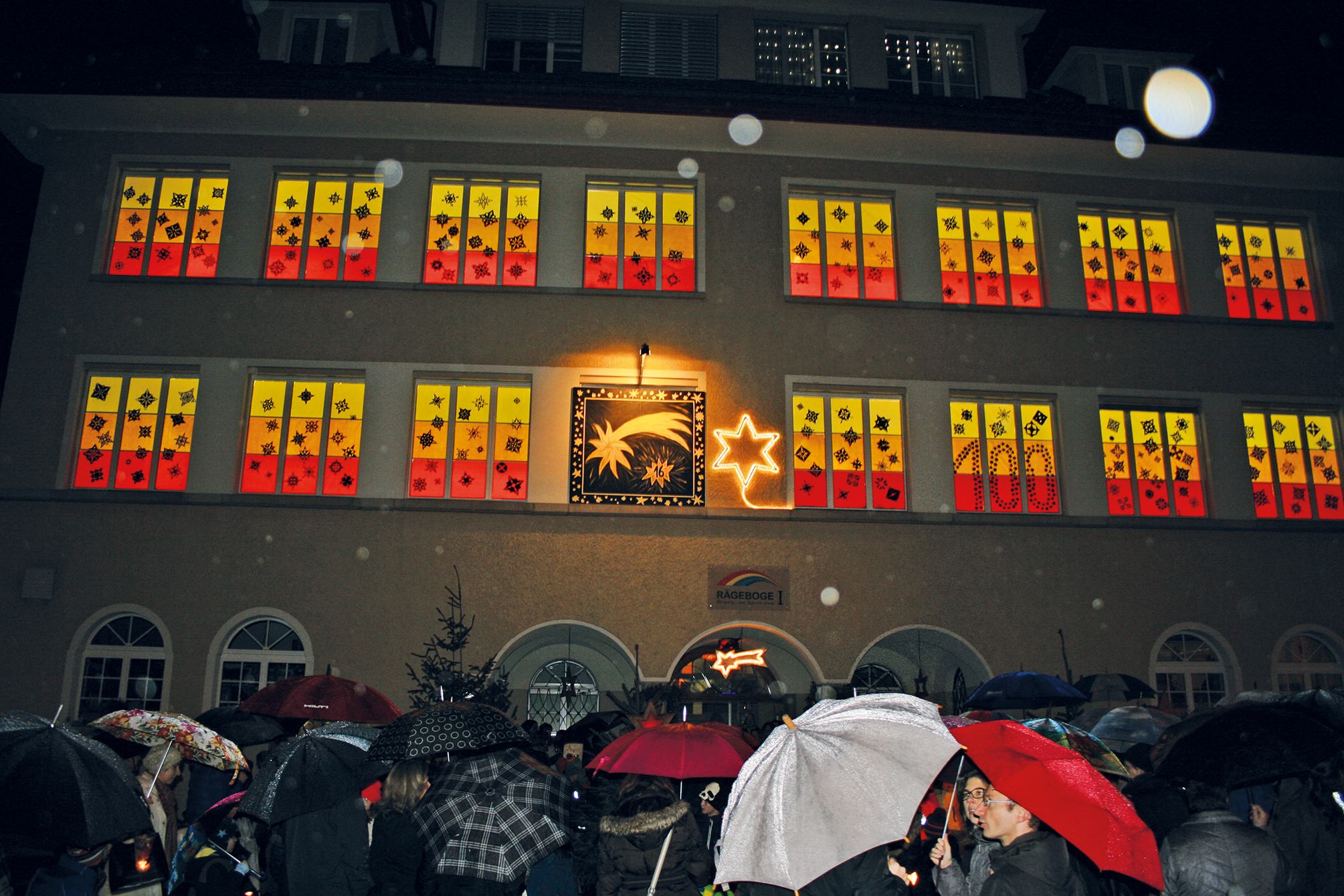 INWIL – Kein grosser Festakt, keine langen Reden! Das immer noch wunderschöne Schulhaus Rägeboge I wurde besinnlich, mit vielen Sternen beleuchtet, gefeiert.
