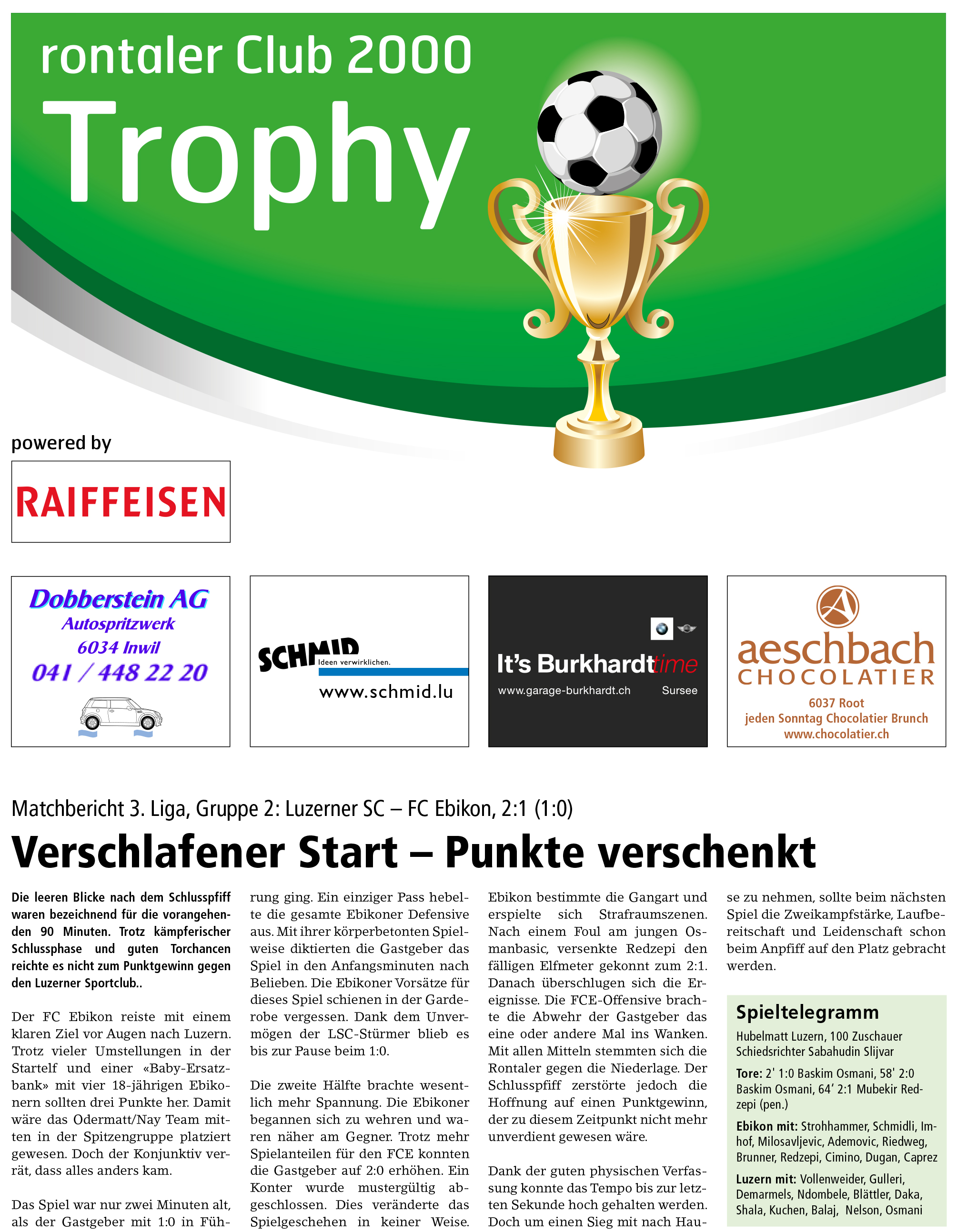 Matchbericht 2. Liga regional: FC Willisau I - FC Perlen-Buchrain I 8:2 (4:1)