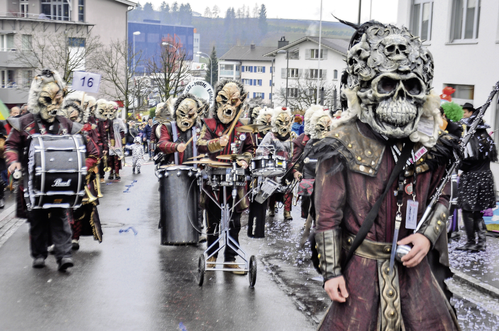 DIERIKON – Am Sonntag, 31. Januar, verwandelte die legendäre Dörflifasnacht unter der Federführung der einheimischen Guuggenmusig Schlitzäugler  den Dorfkern von Dierikon trotz Dauerregen in einen Hexenkessel .