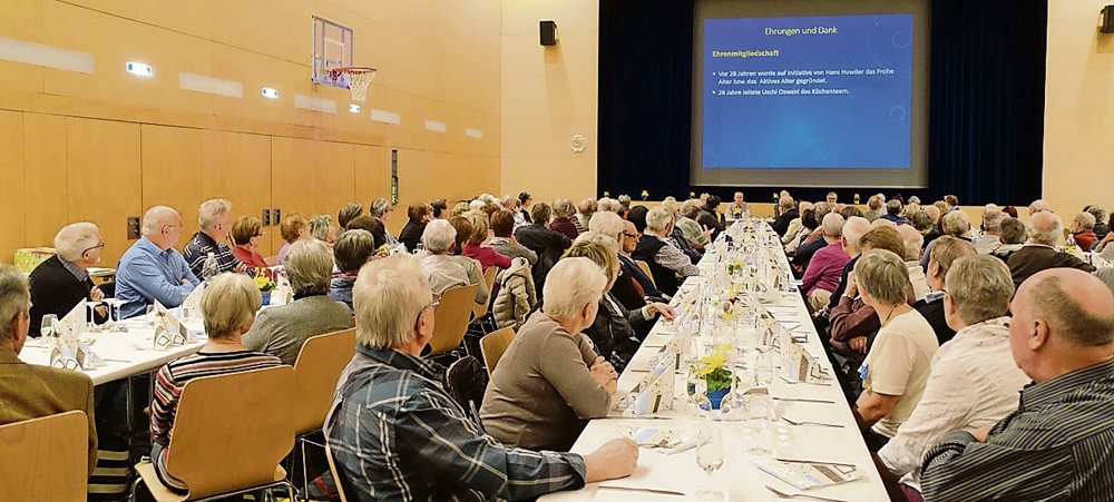 ADLIGENSWIL – Die Jubiläums-Generalversammlung fand am 29. Januar 2016 im Zentrum Teufmatt in Adligenswil statt. Franz Amrein konnte 155 Mitglieder willkommen heissen und führte als Vizepräsident souverän durch die Veranstaltung. Er dankte den Wanderleitern, dem Mittagstischteam und den verschiedenen Vorstandsmitgliedern und Helfern für ihr grosses freiwilliges Engagement.