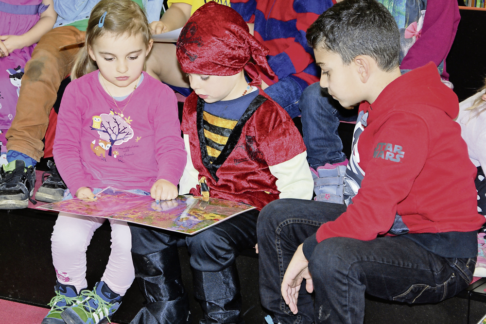 lk. Um fremdsprachige Eltern auf das neue Angebot aufmerksam zu machen, hat die Bibliothek das «Café Grüezi» und eine Gruppe Spielgruppenkinder zu einer Piratenreise eingeladen. Als erstes finden die Kinder in Suchbilderbüchern im Nu die richtigen Bilder. Anschliessend überstehen die kleinen Piraten den Sturm auf dem Schiff. Dann schicken sie Papierschiffe auf die Reise und staunen über einen blinden Passagier: Eine kleine Leseratte hat sich in einem dicken Buch durch die Seiten gefressen und sich so ein gutes Versteck gebaut. Schliesslich führt eine rote Spur die Kinder quer durch die Bibliothek zu einer Schatzkiste, gefüllt mit Schokoladengeld und Piratensticker. Während sich die Kinder in die bereit gelegten Bücher vertiefen, zeigt Oberpiratin Janine Felder den Müttern die Bücher in den diversen Sprachen. Dabei wird klar, dass die nächste Lieferung neben albanischen, serbischen, portugiesischen oder türkischen auch arabische und kurdische Bilderbücher enthalten muss.