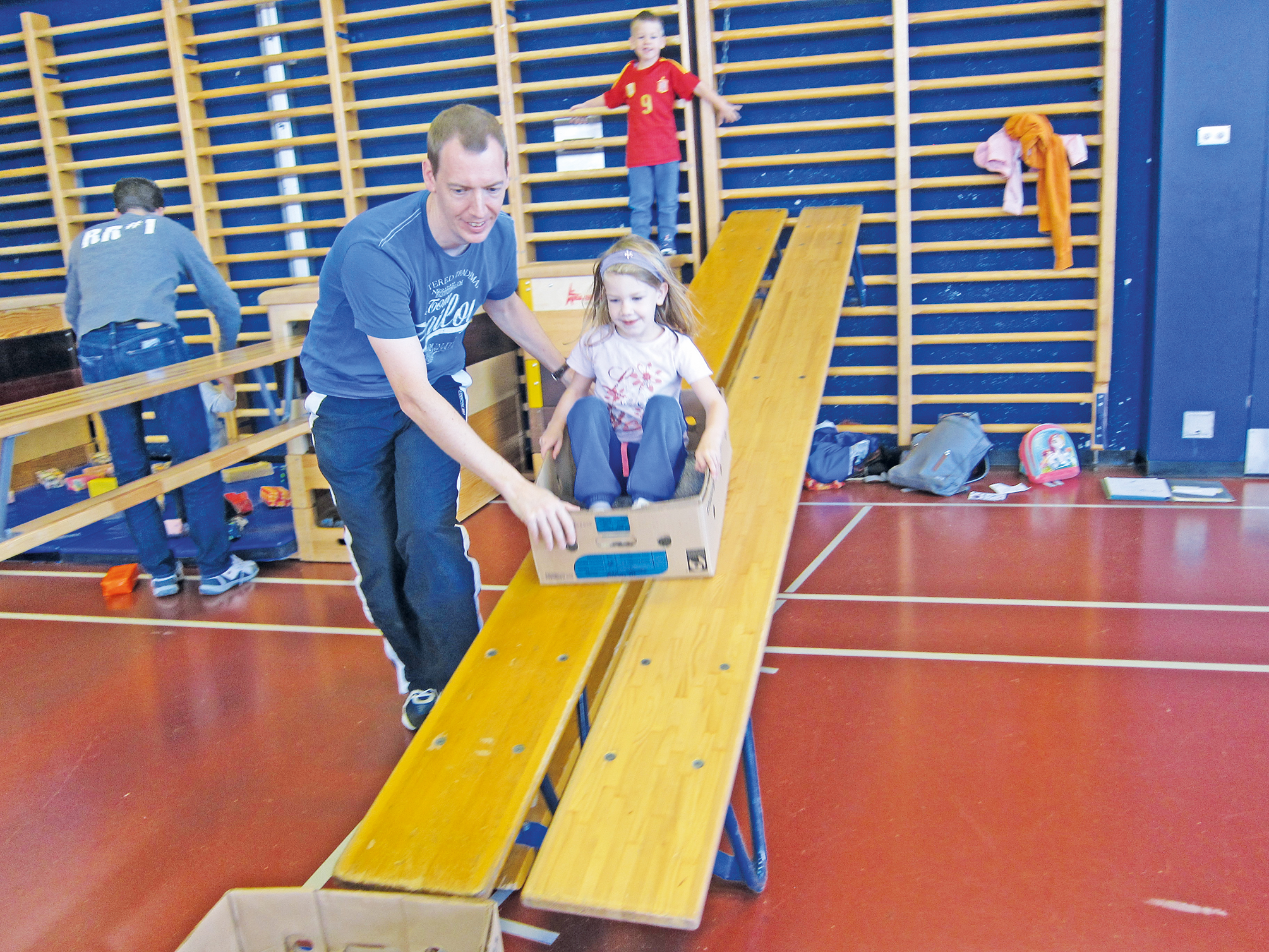 ak. Es gab eine Flugpost, einen Zeitungsverteiler oder eine riesige Paketwaage. Pakete, Zeitungen und Briefe wurden sortiert, abgestempelt und verteilt. Viele Kinder machten sich als Pöstler auf den Weg und bemühten sich, dass die Post am richtigen Ort ankam. Auch vor dem Hund mussten die kleinen Pöstler davonhüpfen! Später gab es dann eine Siesta in der Hängematte. Nicht nur die Kinder turnten eifrig mit, auch die Väter gaben alles. Animierten ihre Kinder, halfen ihnen über schwierige Hindernisse und lobten sie, wenn sie es geschafft hatten. So erstaunte es auch nicht, dass viele sagten, sie kämen das nächste Mal wieder: am Samstag 14. März 2015!