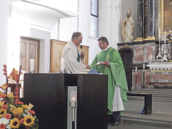 Im Sonntagsgottesdienst vom 13. Oktober verabschiedete sich Diakon Andreas Wieland von seiner Pfarrei. Er übergab dabei feierlich die Pfarreileitung dem des. Pastoralraumleiter Pfarrer Hanspeter Wasmer von Meggen. Auf Wunsch von Andreas Wieland wurde die schlichte Feier in der Pfarrkirche vom St. Martinschor mit Werken von Mendelssohn umrahmt. Der Präsident des Kirchenrats, Richard Beeler, und von der reformierten Kirche, Ursina Parr und Petra Schallow, bedankten sich beim scheidenden Pfarreileiter für seine wertvolle Arbeit und sein Engagement in der Gemeinde in den vergangenen fast vier Jahren. Zur persönlichen Verabschiedung von Andreas Wieland lud die Kirchgemeinde anschliessend zu einem gemütlichen Apéro riche ins Zentrum Teufmatt ein. Die Kirchgemeinde wünscht Andreas Wieland einen guten Start als Co-Leiter im Pastoralraum Menzikon-Pfeffikon und viel Kraft für seine neue Tätigkeit als Seelsorger im Spital Menzikon.