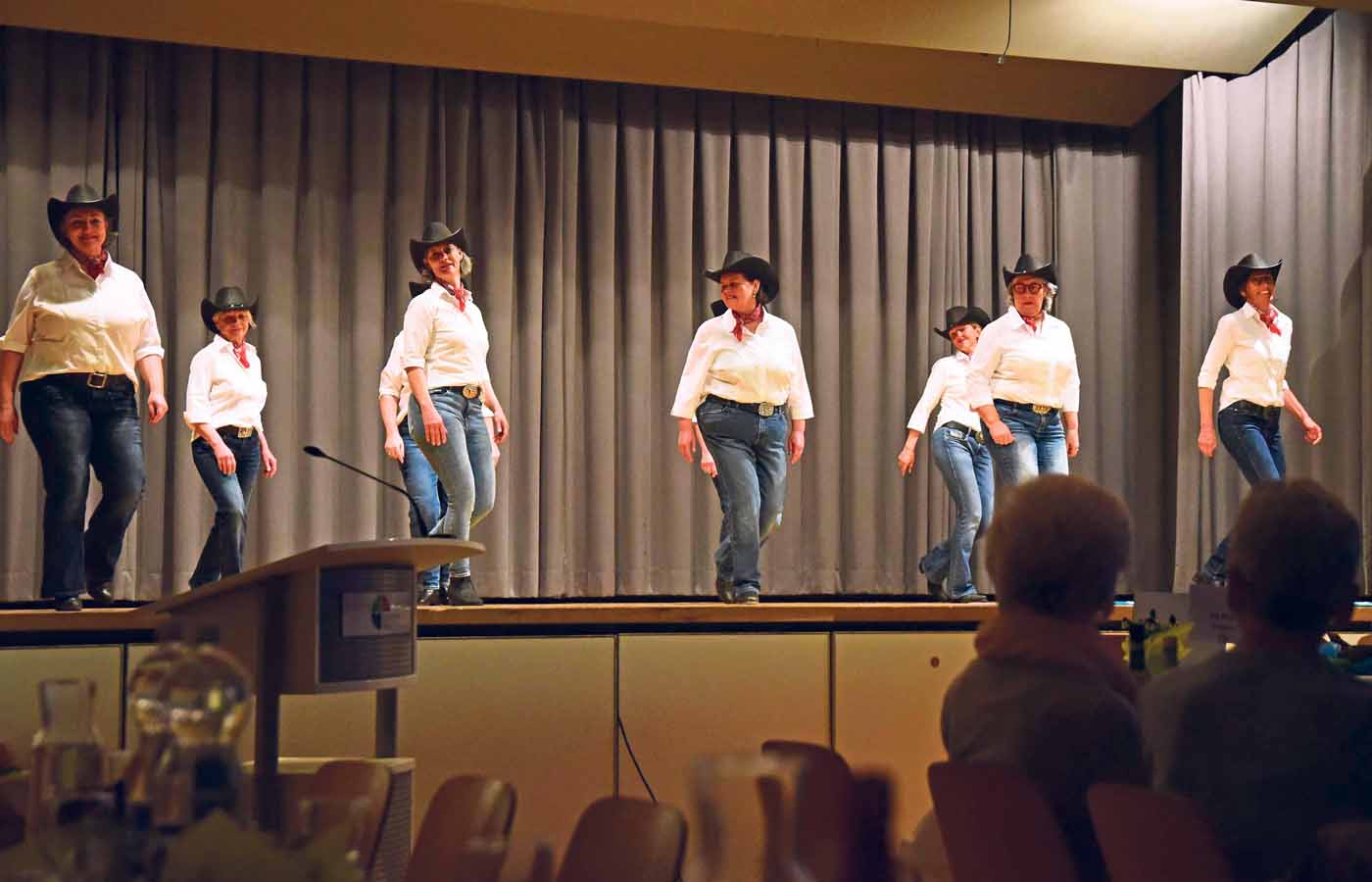 Nach dem Salat hiess es Bühne frei für die Ebi Line Dancers. Die gelungene Choreographie zu der rassigen Musik begeisterte das Publikum im Saal. Mit grossem Applaus wurden die Tänzerinnen für ihre tolle Darbietung belohnt.
