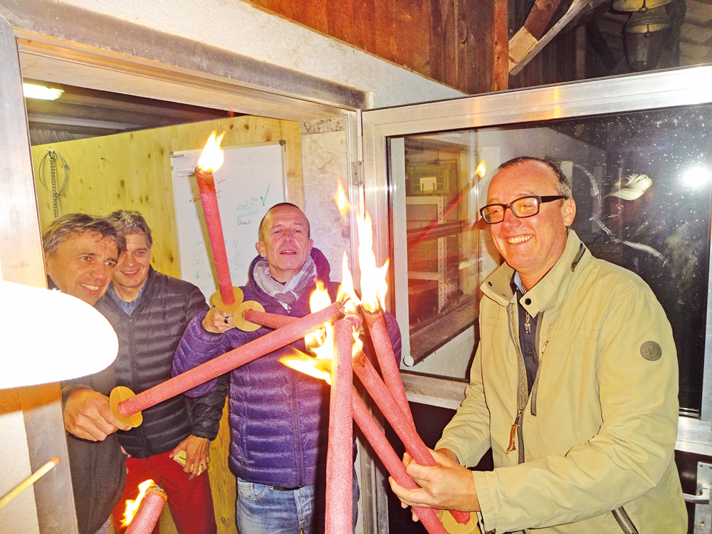 Für den Rückweg standen erfreulicherweise Fackeln bereit, welche den dunklen Weg erhellten. Ein lustiger und fröhlicher Fackelumzug zog so zu später Stunde vorbei an Bauernhöfen zurück Richtung Seilbahn. Mit dem Car reisten alle wieder glücklich und zufrieden nach Ebikon, wo manche den Abend bei einem gemütlichen, letzten Bier ausklingen liessen.