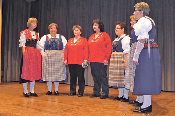 Remy Buchmann liess in einer interessanten Bild- und Tonbildschau die Aktivitäten des Jahres passieren, die Wanderungen, die Sozialeinsätze, die Hallentrainings. Seine grosse Arbeit wurde mit viel Applaus gewürdigt. Nach dieser Vorführung sangen die Jodlerinnen vom Hobby Chörli Ebikon die vier Lieder „Zäme si“, „Abestimmig“, „Danke säge“ und „s’Chilchli“. Vielen wurde es ganz warm ums Herz. Doch mit der Eröffnung des Dessertbuffets wurden auch kulinarische Genüsse wach. Einfach genial präsentierten sich die vielen Kuchen, man hatte seine liebe Mühe mit dem Auswählen. Sie wurden von den Seniorenfrauen selbst gebacken und den Schnaps zum Kafi spendierten die Turner.