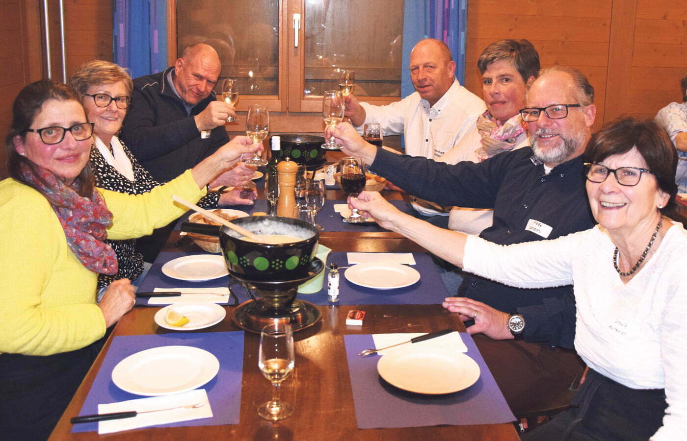 pd/Red. Ebikon. 54 Personen kamen nicht nur in den Genuss eines feinen Käsefondues, sie erhielten zusätzlich musikalische Unterhaltung. Nach der Begrüssung der beiden Co-Präsidenten Hans-Ruedi Wettstein und Fredy Landolt hiess es zuerst Arbeiten. Alle Fondue-Zutaten lagen richtig abgemessen neben dem Caquelon bereit. Wie genau vorgegangen werden sollte, erklärte Hans-Ruedi – zur Sicherheit! Immer vier Personen hatten ein Fonduerechaud, und alle waren verantwortlich, dass schlussendlich gegessen werden konnte.