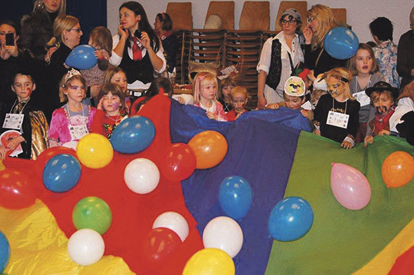 Die Rüssgusler aus Ebikon brachten die Zirkusfamilie so richtig in Schwung und liessen den Pfarreisaal erbeben. Als krönender Abschluss überraschte Clown Nicole die Kinder mit einem Sprungtuch gefüllt mit bunten Luftballons.