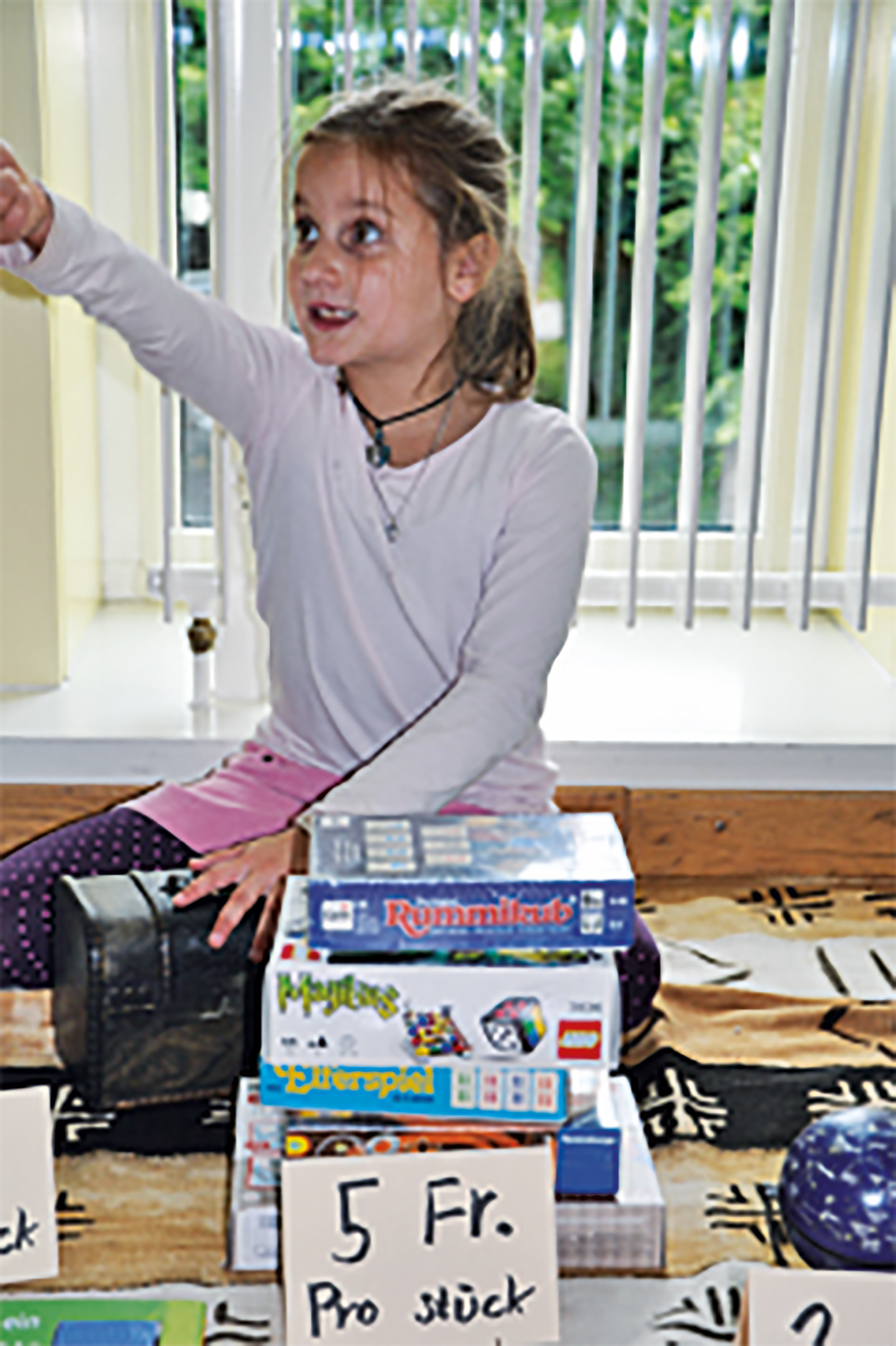 Auch in diesem Jahr war der Andrang phänomenal! Die Kinder konnten es kaum erwarten, ihre ausrangierten Schätze zu präsentieren. Es wurde getauscht, verkauft, gedealt, verschenkt und gehandelt wie bei den Grossen. Für alle Familien mit Vorschulkindern ist es eine ideale Plattform, gut erhaltene tolle Spielsachen, Bücher, Comics, DVDs, Lernspiele, Lego, Playmobil oder Outdoorspiele zu ersteigern. Die Freude der Kinder wird nämlich mit den Spielsachen gleich mit verkauft. Viele Kinder, die etwas mit ihrem verdienten Batzen kaufen konnten, stolzierten gleich mit ihren neuen Erungenschaften zu ihren Freunden, Mamis und Papis. Auch die Ludothek war mit einem Stand vertreten.