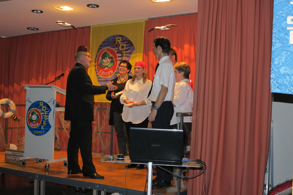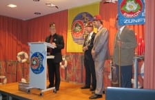 Alle anderen Vorstandsmitglieder wurden für weitere zwei Jahre bestätigt. Eine besondere Ehre kam Alois Camenzind zu: er wurde zum «Rüzü» (Rüüdigen Zünftler) ernannt, eine Auszeichnung, die für aussergewöhnliches Engagement vergeben wird, in seinem Fall für die Verdienste im Rahmen der Zunftarbeit. Dank umsichtiger Kostenkontrolle durch Silvan Gilgen konnte die Zunft trotz der schlechten Wetterverhältnisse während der Fasnacht 2013 ein positives Jahresresultat präsentieren. Ebenfalls präsentiert wurde die neue Plakette. In einem Wettbewerb unter den Guggenmusigen hatte der Vorschlag von René Vogel, Mitglied der «Bueri Chessler», das Rennen gemacht. Die Plakette wird übrigens seit 14 Jahren von der Raiffeisenbank Ebikon gesponsert. Den Reigen der scheidenden Funktionäre komplettierte Rolf Friedrich, der sein Amt als Delegierter des Ehrenrates an Walter Holl weitergab. Alle Zurückgetretenen wurden würdig verabschiedet.