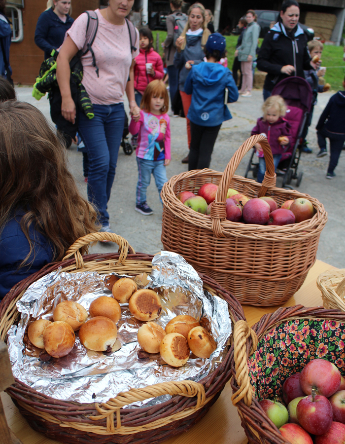liebsten eines der Kälbchen mit nach Hause genommen. Zum Abschluss des gelungenen Nachmittags gab es von Frau Krummenacher, der Bäuerin, selbstgebackene Schoggibrötchen, selbstgepflückte Äpfel und natürlich den selbstgepressten Most.