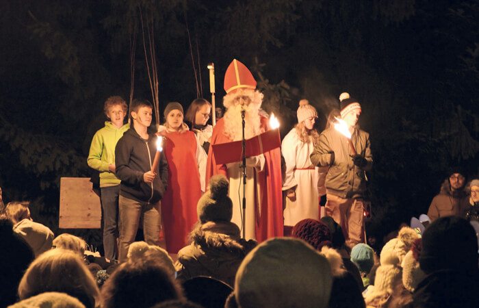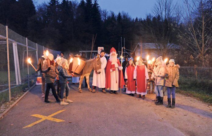 Am 3. Dezember kam der Samichlaus mit seinem Gefolge vom Eibelerwald zum Dorfplatz. Begleitet wurde er von den Spielgruppenkindern, den Kindergärtnern, den Erst- und Zweitklässlern.