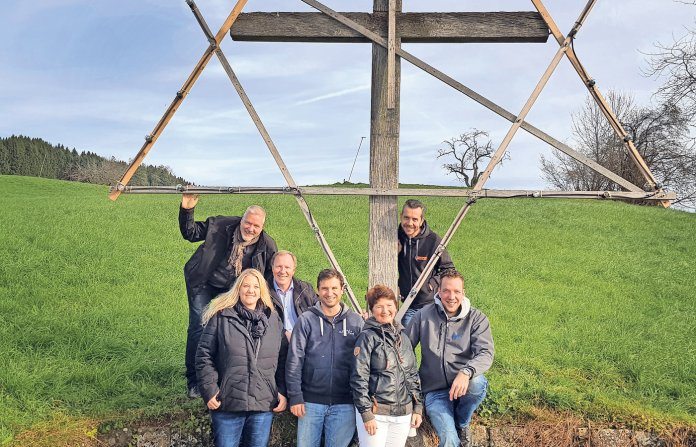 pd. Auch wenn er bereits zum weihnächtlichen Dorfbild gehört, erfreut der Anblick des leuchtenden Sterns jedes Jahr aufs Neue. Der Gewerbeverein Adligenswil macht dies möglich: Pünktlich um 10 Uhr trafen sich die Vorstandsmitglieder des Gewerbevereins bei Klaus Odermatt von Odermatt Holzbau Adligenswil, um den 4,5 Meter hohen Leuchtstern zum Zielort zu transportieren. In diesem Jahr durfte Esther Gabriel als Ehrengast dabei sein. Mit viel Energie und Herzblut unterstützt sie den Gewerbeverein seit vielen Jahren bei sämtlichen Anlässen und tut dies stets diskret und mit grosser Verlässlichkeit. Aus diesem Grund hat sich der Vorstand entschieden, Esther Gabriel als Ehrengast einzuladen, um sich auf diese Weise bei ihr zu bedanken. Nach einem reibungslosen Transport konnte der Weihnachtsstern in Rekordzeit bei schönstem Wetter und bei angenehmen Temperaturen aufgestellt und in Betrieb genommen werden. Bruno Fürer trägt in verdankenswerter Weise die Stromkosten, ihm gehört ebenso der Dank des Gewerbevereins wie allen Vereinsmitgliedern, die jeweils die wiederkehrenden Unterhalts- und Instandhaltungskosten des Sterns übernehmen. Der Vorstand des Gewerbevereins dankt aber auch den Einwohnerinnen und Einwohnern der Gemeinde Adligenswil für die tolle Unterstützung und die Berücksichtigung der lokalen Firmen. Er wünscht allen eine friedliche Adventszeit, frohe Festtage und viele Erfolge im 2018!