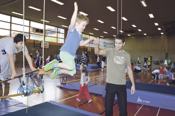Carlo Chinellato, Vater von Tochter Lia, war das erste Mal am Vaki-Turnen: «Wir sind frisch nach Ebikon gezügelt und finden es toll, dass alle Väter eingeladen sind, nicht nur die Vereinsmitglieder. Wir geniessen diese Stunde zusammen.» Und etwas ausser Atem meinte Vater Brun: «Meine beiden Kinder, Tabea und Yahin, wären sehr enttäuscht gewesen, wenn ich nicht gekommen wäre. Sie haben sich darauf gefreut. Ich finde es übrigens toll, dass so viele Väter mit ihren Kindern hier sind.» Auf der Zuschauertribüne verfolgt eine junge Mutter mit ihrem drei Wochen alten Baby interessiert das Geschehen: «Es geht alles erstaunlich gut. Mein Mann ist mit den beiden andern Kindern am Turnen – sie geniessen ihren Vater und ich habe den Plausch zuzusehen.»