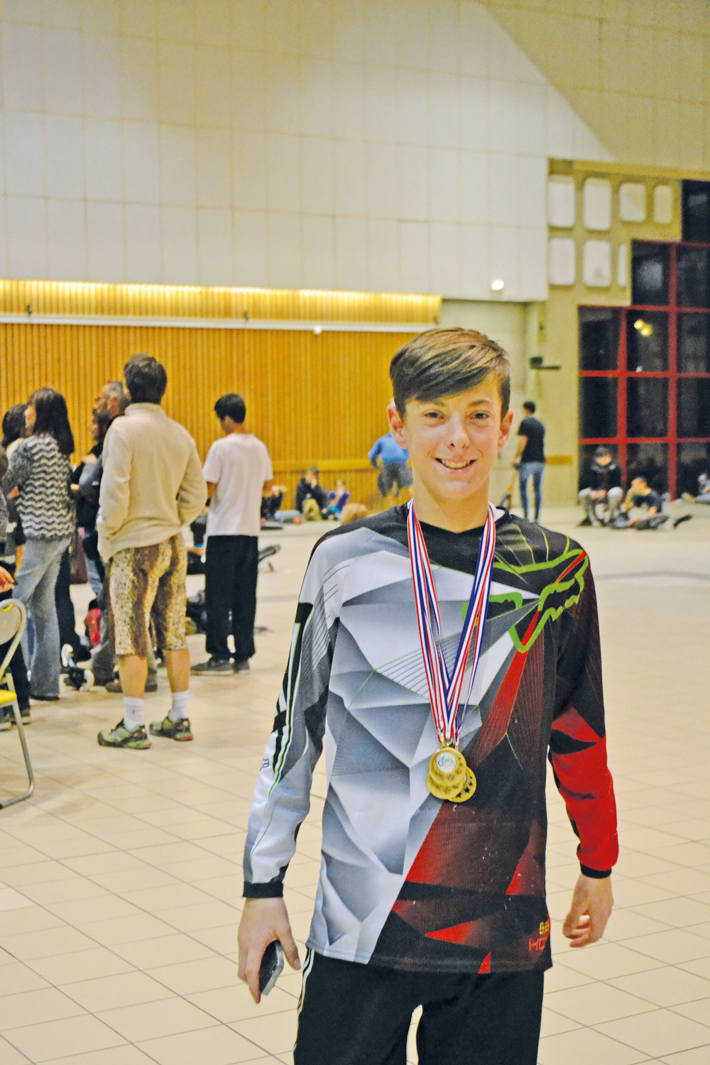 Gleich am ersten Tag, beim 10-km-Rennen, fuhr Liroy Haas in seiner Kategorie auf den 1. Rang. Beim 400m, beim Downhill und mit einer neuen Bestlänge von 1,70 m beim Weitsprung schaffte er es jeweils auch auf den 1. Podestplatz und holte somit viermal den französischen Junioren- Meistertitel. In den Disziplinen von Cross, Radlauf und langsam Vorwärts konnte er je den 2. Rang holen und im 100 m den 3. Rang. Mit vier Gold-, drei Silber- und einer Bronze-Medaille kann Liroy auf eine tolle und intensive Woche zurück blicken und die Rennsaison für 2015 abschliessen.